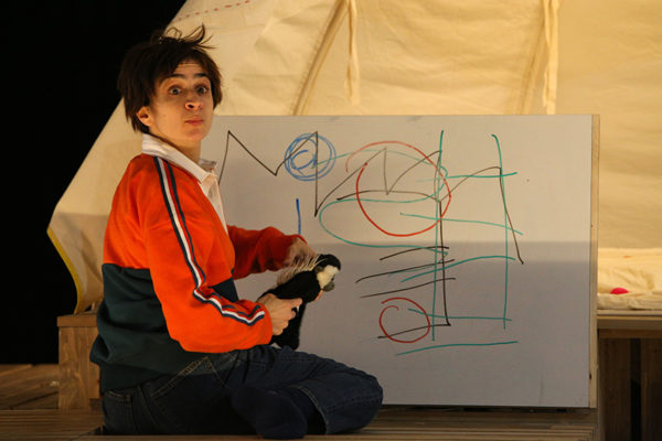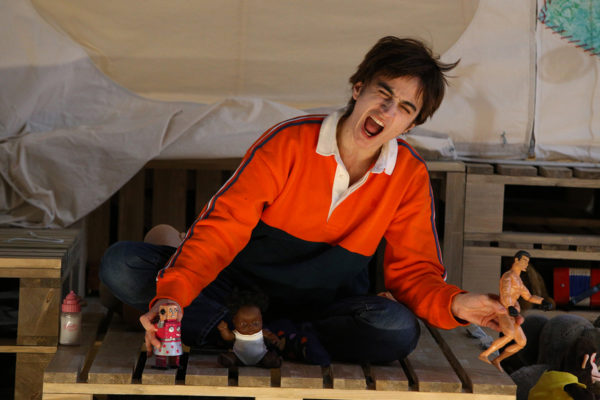 Sami est interprété en alternance par deux jeunes comédiennes, Louise Guillaume et, vue ce soir-là – menue, lumineuse, une voix fraîche d’enfance sans contrefaire le bébé, un jeu très juste – Mirabelle Kalfon. Pour son premier spectacle à destination du jeune public, David Lescot leur a composé un solo rythmique, dans une langue rapide, ludique, joyeuse.