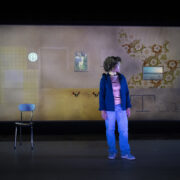 Sami est interprété en alternance par deux jeunes comédiennes, Louise Guillaume et, vue ce soir-là – menue, lumineuse, une voix fraîche d’enfance sans contrefaire le bébé, un jeu très juste – Mirabelle Kalfon. Pour son premier spectacle à destination du jeune public, David Lescot leur a composé un solo rythmique, dans une langue rapide, ludique, joyeuse.