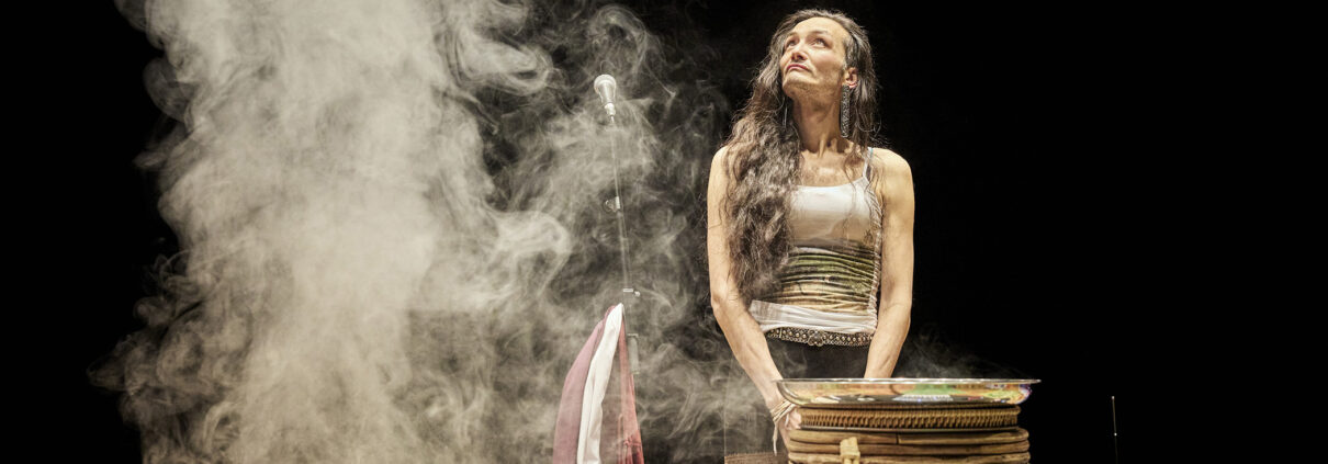 Vanasay Khamphommala, artiste queer singulière et délicate, dont on avait beaucoup aimé l’Écho en 2022, nous prend aujourd’hui par la main et l’âme pour nous emmener en quête de la voix de sa grand-mère. Tapis de fils de plastique multicolores, une table ronde où trône une vasque, petits sièges et coussins, on s’assoit au ras […]