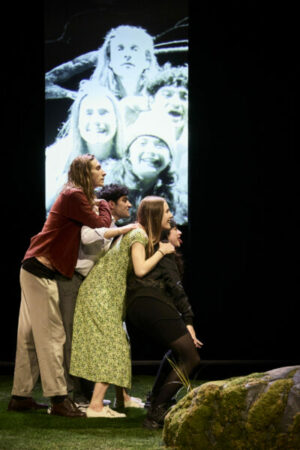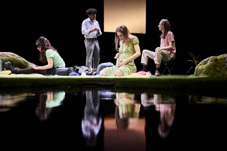 Les quatre interprètes, Esther Armengol Touzi, Ramo Jalilyan, Charlotte Leroy, Paolo Malassis, récemment diplômés de l’École du Théâtre national de Bretagne, sont jeunes, sont beaux, sont fragiles et talentueux. Ils donnent à leurs personnages une grâce mobile et fervente comme une flamme au vent. Lena Paugam leur a composé une mise en scène très graphique, presque chorégraphique, où leurs corps, dans leurs mouvements mais aussi la précision de leurs rapports, des distances entre eux, écrivent dans l’espace se qu’ils ne disent pas.
