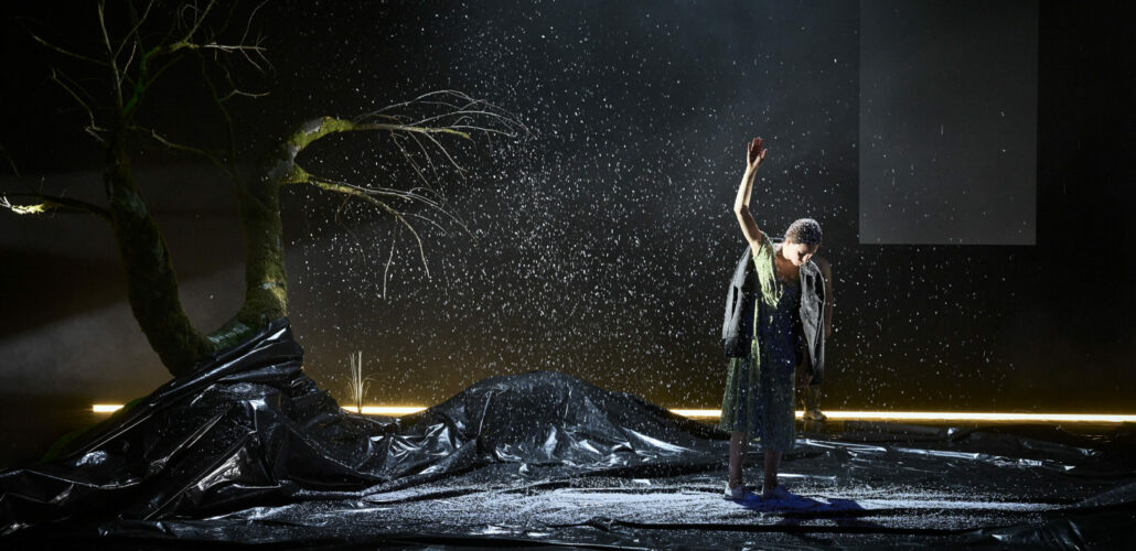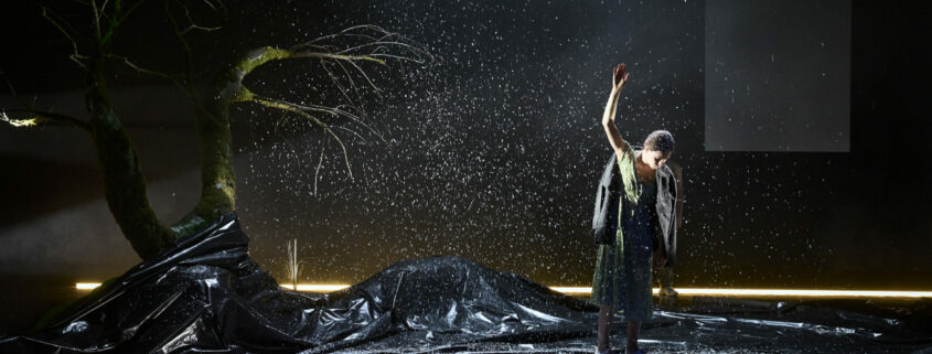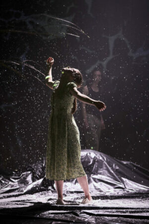 Le bel espace conçu par Clara Georges Sartorio lui aussi manifeste le temps dans sa permanence et son délitement, toujours présent mais se dégradant de saison en saison. Il est habité d’une riche matière sonore, presque cinématographique, qui compose un autre paysage superposé à celui qu’on voit : à l’instar de la très intéressante création lumière, elle vient parfois renforcer le récit mais souvent, et c’est vraiment réussi et délicat, elle s’en décale, le précède ou en apporte au jour une facette lointaine, ou silencieuse.