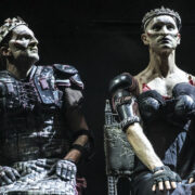 La deuxième « tribu », celle des Elfes est plus monstrueuse que féérique. Aucun doute : les trolls ont bien l’air de trolls. Ils sont poilus, velus, tordus, ventrus, crochus, couillus, et…nous font pleurer de rire!… Mention spéciale à Christian Hecq/Obéron sorti tout droit d’un cartoon et à Louis Arène/Puck aussi gracieux que talentueux.