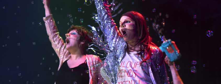 Un spectacle qui fait la chaleureuse et joyeuse défense des lieux festifs populaires, de la puissance des rêves et du collectif, un spectacle avec un brin de folie et beaucoup de générosité, modeste, bigarré, farfelu, drôle et tendre. L’horaire tardif ne s’y prête pas tellement, mais on pourrait y aller aussi en famille, avec des enfants dès 8-10, qui se régaleront (comme leurs parents) de l’humour très visuel, des chorégraphies improbables, de l’humeur gaiement batailleuse, et du jeu impeccablement précis, plein d’allant et de fantaisie de la troupe.