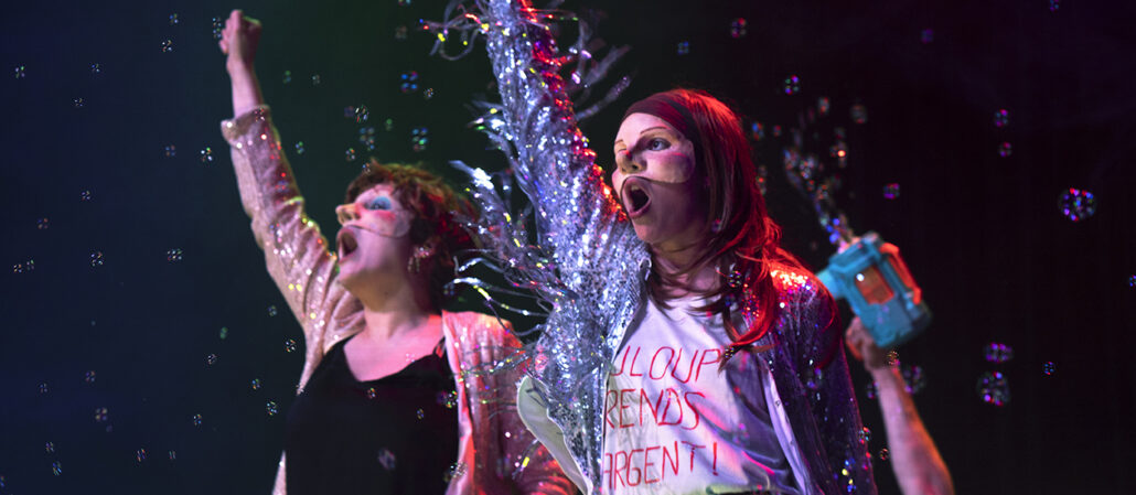 Un spectacle qui fait la chaleureuse et joyeuse défense des lieux festifs populaires, de la puissance des rêves et du collectif, un spectacle avec un brin de folie et beaucoup de générosité, modeste, bigarré, farfelu, drôle et tendre. L’horaire tardif ne s’y prête pas tellement, mais on pourrait y aller aussi en famille, avec des enfants dès 8-10, qui se régaleront (comme leurs parents) de l’humour très visuel, des chorégraphies improbables, de l’humeur gaiement batailleuse, et du jeu impeccablement précis, plein d’allant et de fantaisie de la troupe.